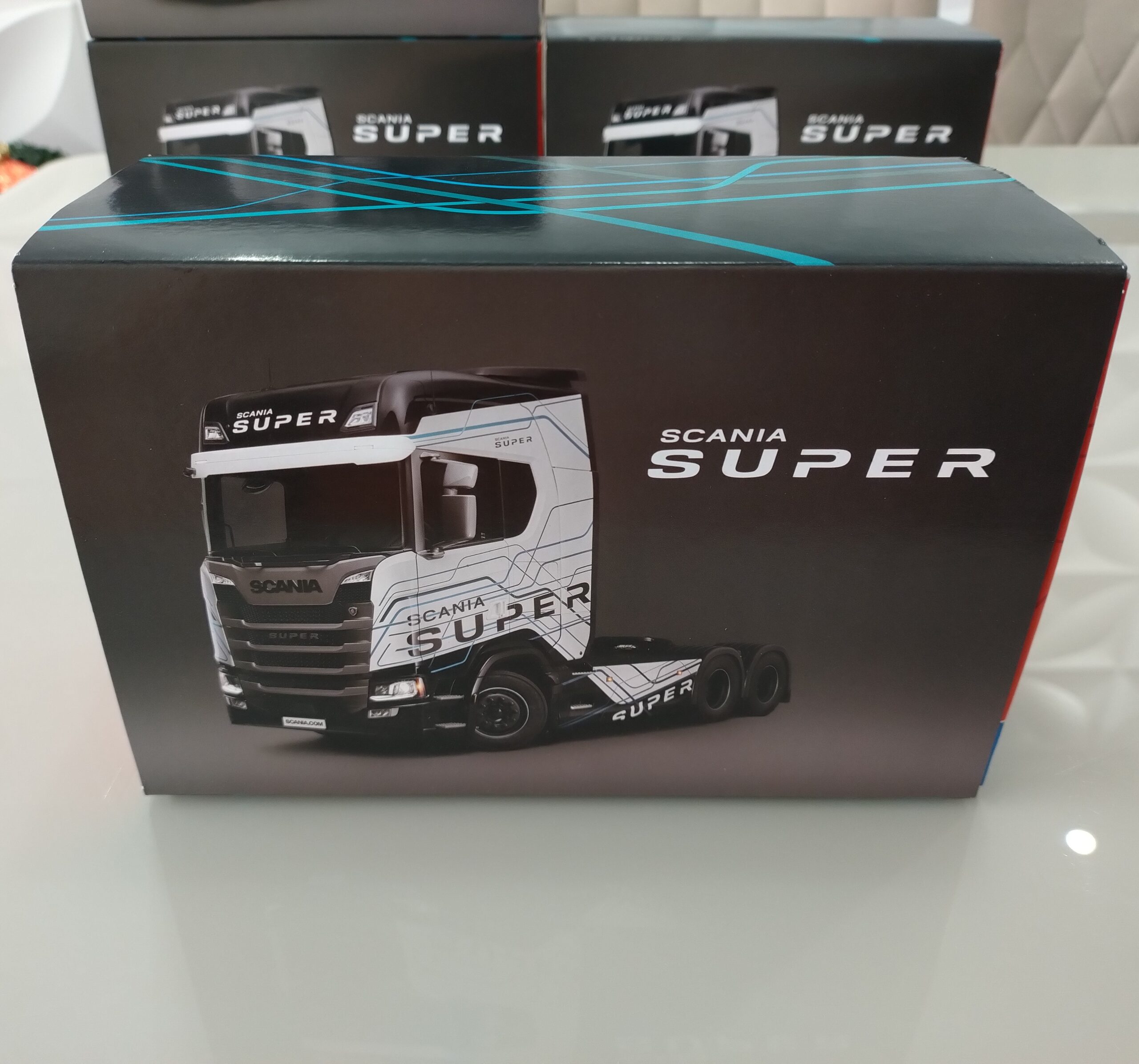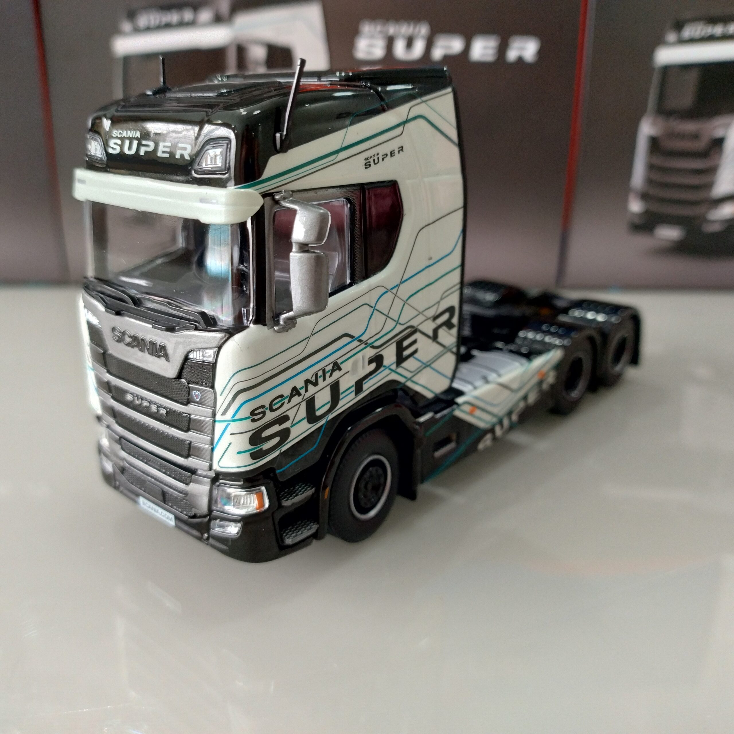 Miniatura Caminhão Scania, série Super, 560S, 6×2, cabine leito na escala 1:50.