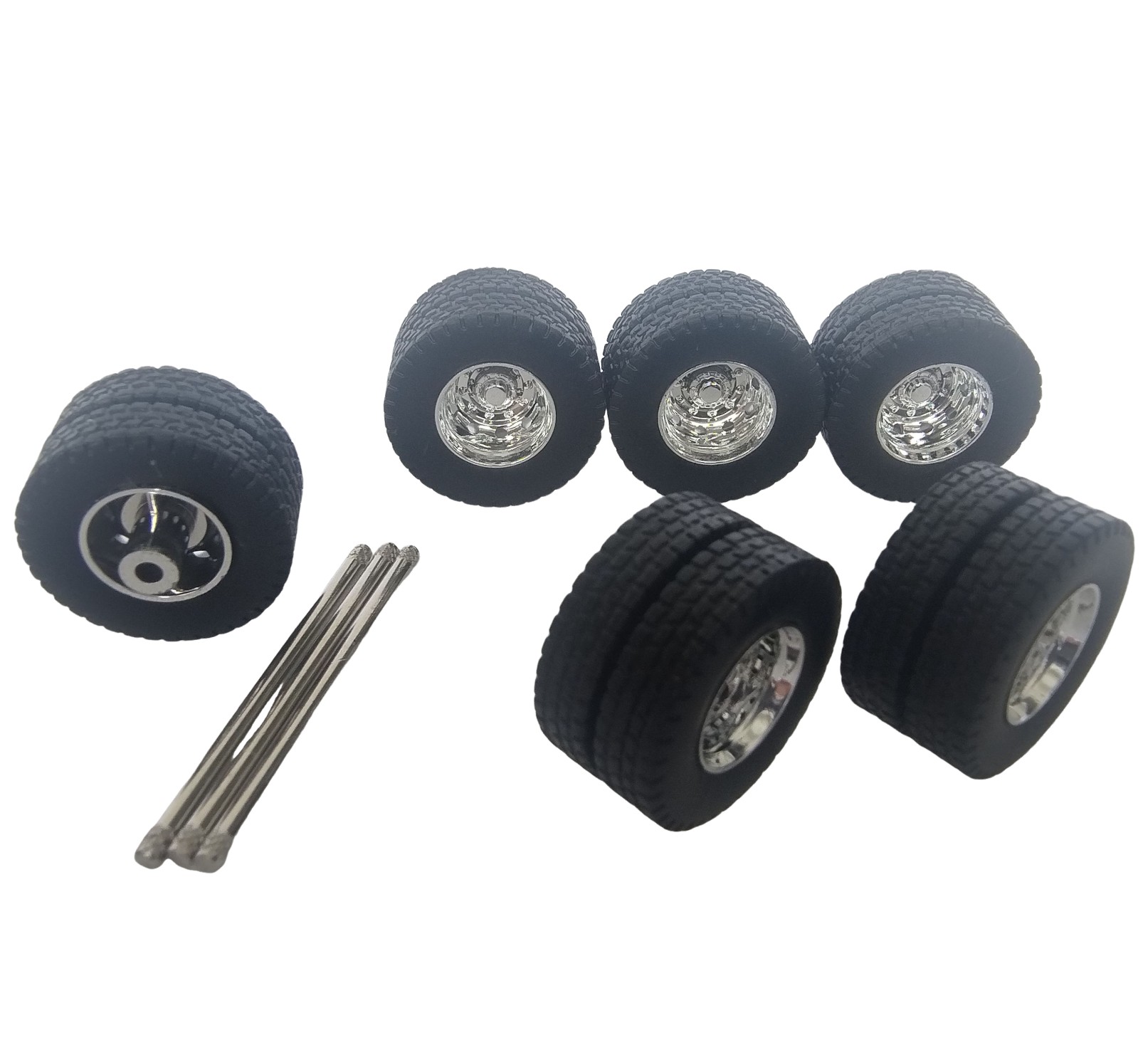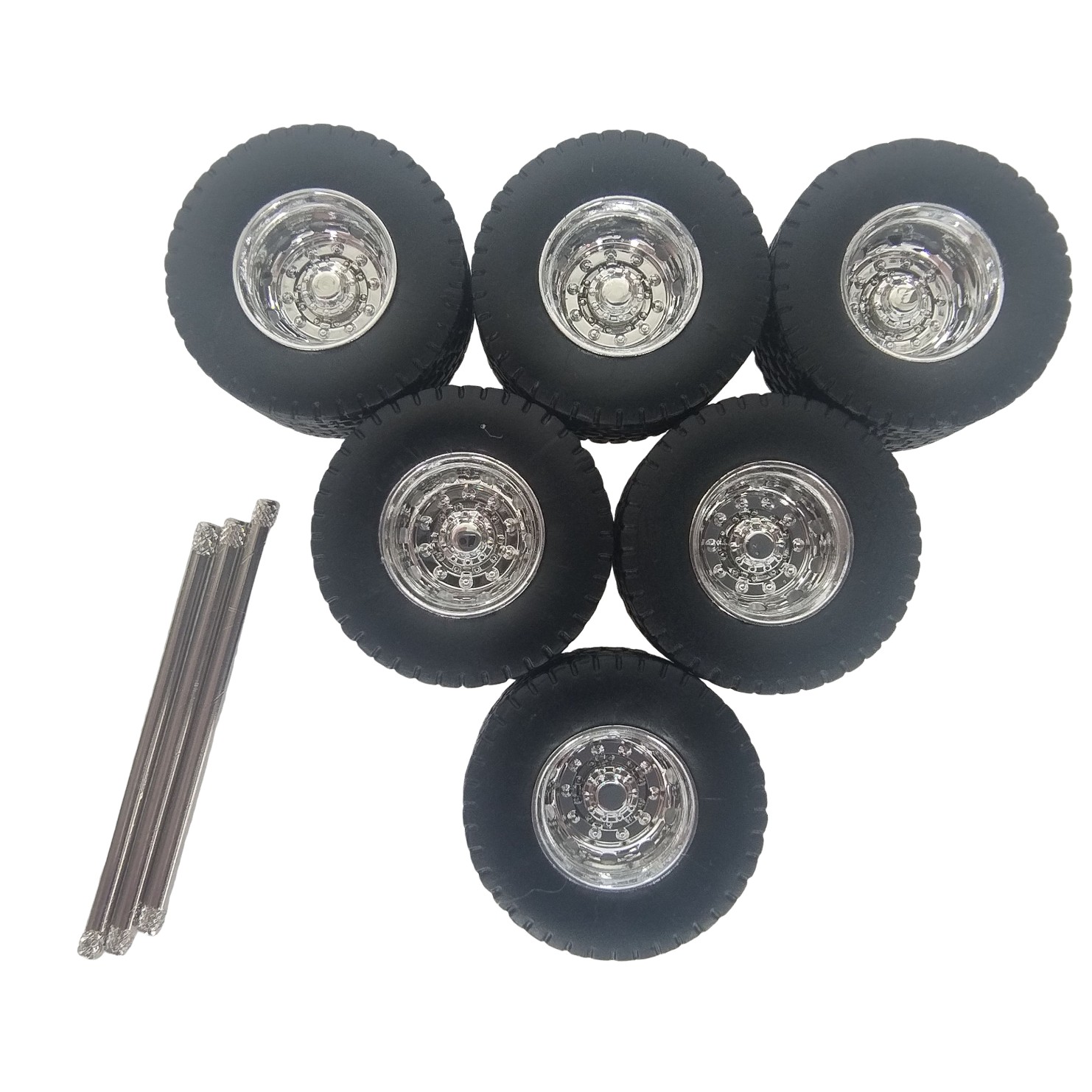 Rodas traseiras Cromadas da Tekno sem redução nos cubos para miniaturas de carretas na escala 1:50.
